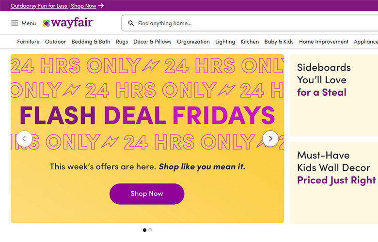 Wayfair是专注于家具和家居用品的电商平台,以提供高品质的商品和优质的客户服务而闻名。卖家可以在Wayfair上展示自己的产品,并借助其强大的物流网络将商品送达全球消费者。
