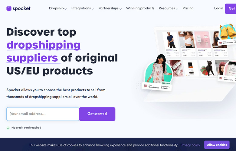 Spocket与欧美供应商密切合作,提供高品质的商品选择,并通过快速物流实现快速配送。