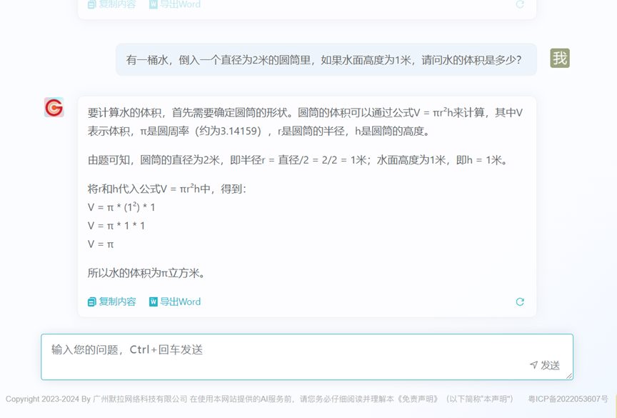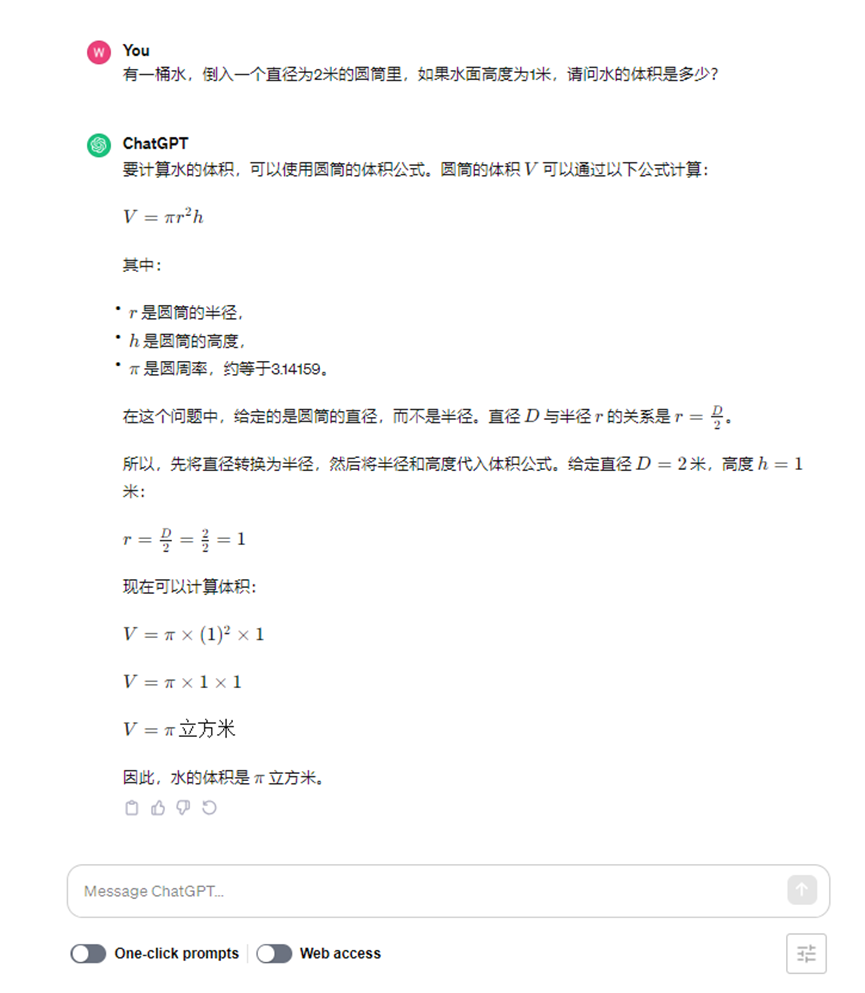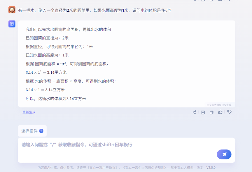好奇怪这道题文心一言的答案跟其他三个的不一样。答案说是π立方米,但是如果是数学考试的话,正常情况我们都会写3.14m³,所以这道题我站文心一言!