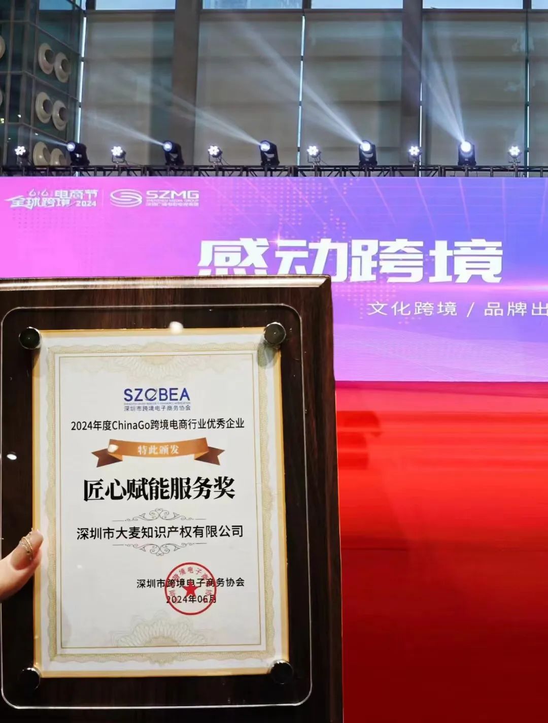 这次荣誉是跨境各届朋友们的信任与支持,小编代表大麦知识产权团队感谢您们一路的选择,大麦知识产权一直在坚持专业、靠谱的道路上前行,2024,让我们一起精彩再续!