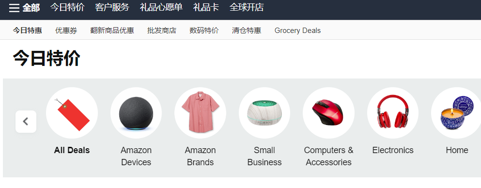 Today's Deals定位于提供各种限时特价商品和优惠活动,帮助消费者以更低的价格购买到优质商品。
