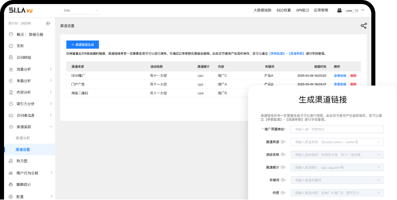 渠道追踪分析:通过 URL 参数区分不同渠道,适用于多种推广场景。