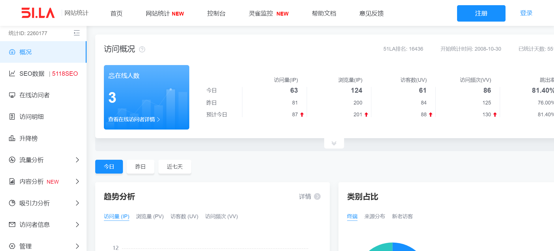 广州有啦网络科技有限公司,成立于 2016 年,是中国领先的免费流量统计技术服务提供商,同时是国家高新技术企业。旗下的产品 51.LA 流量监控分析平台是国内领先的 Web 第三方分析平台,目前已为超过千万个网站提供流量统计服务。公司专注于网站统计领域已有 16 年的历史,致力于探索网站更深度的价值,以开放的心态迎接商务市场方面的探索与合作。51.LA 平台拥有丰富的特色功能,包括数据引用、流量波动提醒、批量创建站点等,为网站开发者和中小企业提供专业的营销工具和解决方案,帮助站长们更高效地经营网站。公司秉持着对行业的专注与创新,期待与合作伙伴共同开创更广阔的商务前景。
