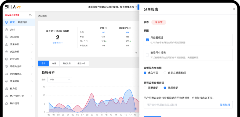 数据报表分享:通过分享链接或用户授权,快速分享网站数据报表给其他用户。