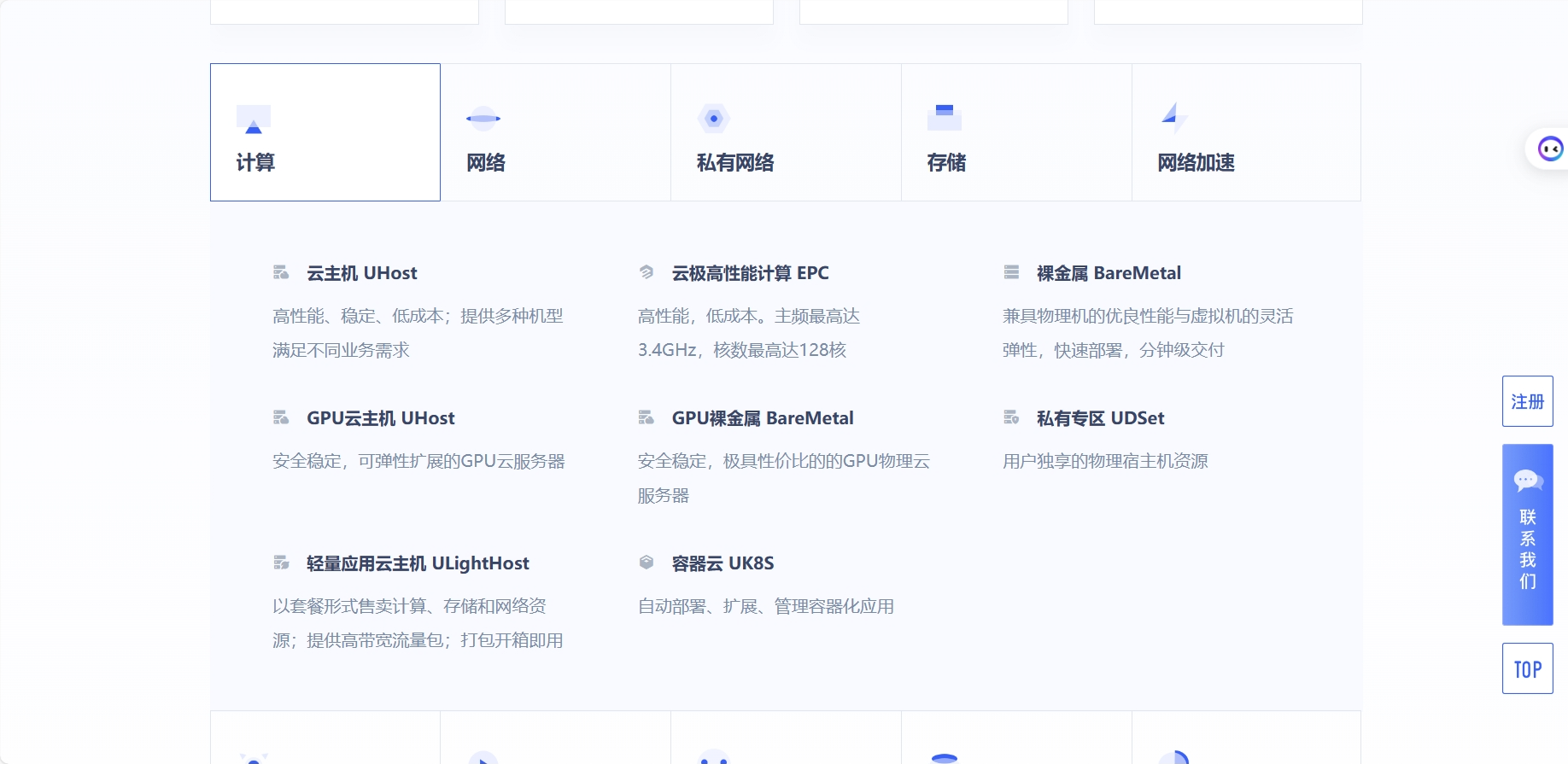 1. 计算类产品:UCloud提供通用计算、IO密集型计算、科学计算等多种场景的计算类产品,以满足不同客户的需求。