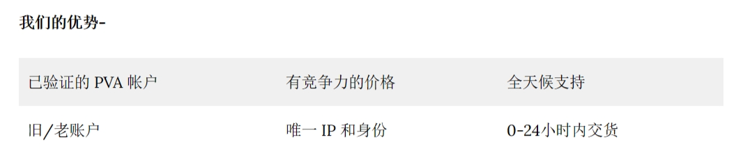 我们拥有一支由高素质专业人士组成的团队,他们建立了一个由值得信赖的供应商组成的庞大网络,我们致力于为客户提供最好的批量账户服务,并提供全天候的客户支持。此外,我们确保最具竞争力的定价,帮助我们的客户以最实惠的价格获得真实账户。无论您是寻找 PVA 账户还是非 PVA 账户、新账户还是旧账户,我们都可以为您提供所有解决方案。