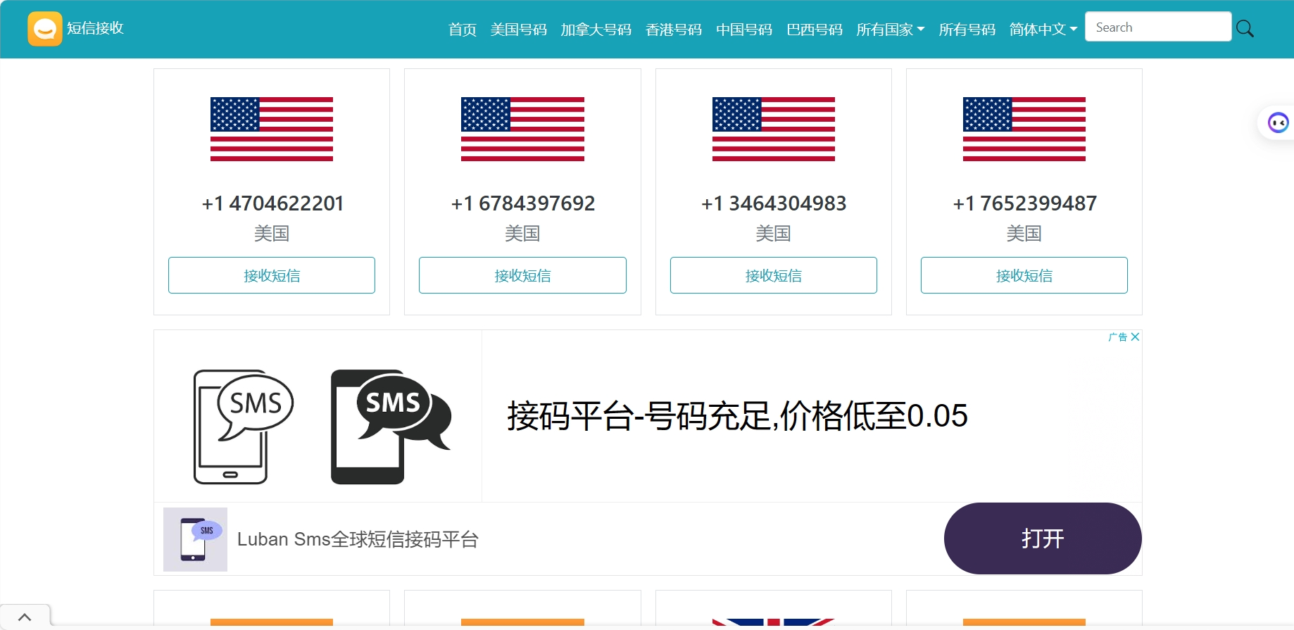 短信接收(freereceivesms.com)是一种免费服务,用于在线接收手机短信验证码的接码平台。不需要注册。只需从下面的列表中选择您的临时手机号码即可,方便用户在注册不重要的App或网址时使用,可以使用网站上的临时手机号码,接收短信验证码并进行手机号码验证,避免真实手机号泄露,以起到隐私短信的保护作用。您可以使用它来接收来自FACEBOOK,TELEGRAM,WECHAT,VK,PAYPAL,ALIPAY等发来的手机短信验证码。