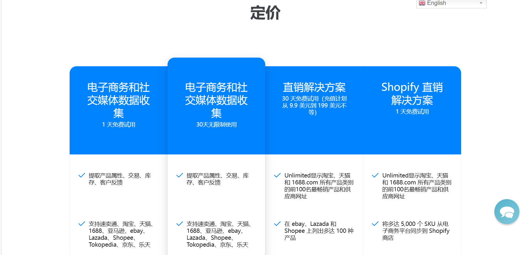 亚马逊爬虫不同的套餐提供1-30天不等的免费试用,各个套餐所包含功能和支持的平台不一,具体套餐内容和定价可到官网查询