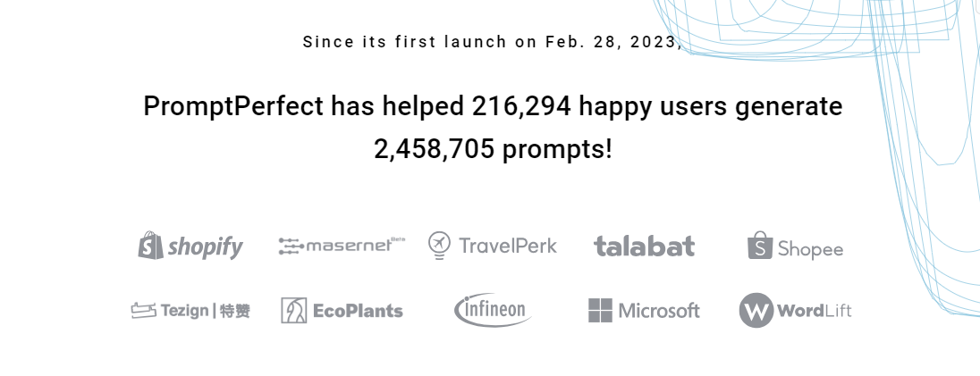 自 2023 年 2 月 28 日首次推出以来,PromptPerfect 已协助 216,294 位满意用户生成了 2,458,705 个提示。