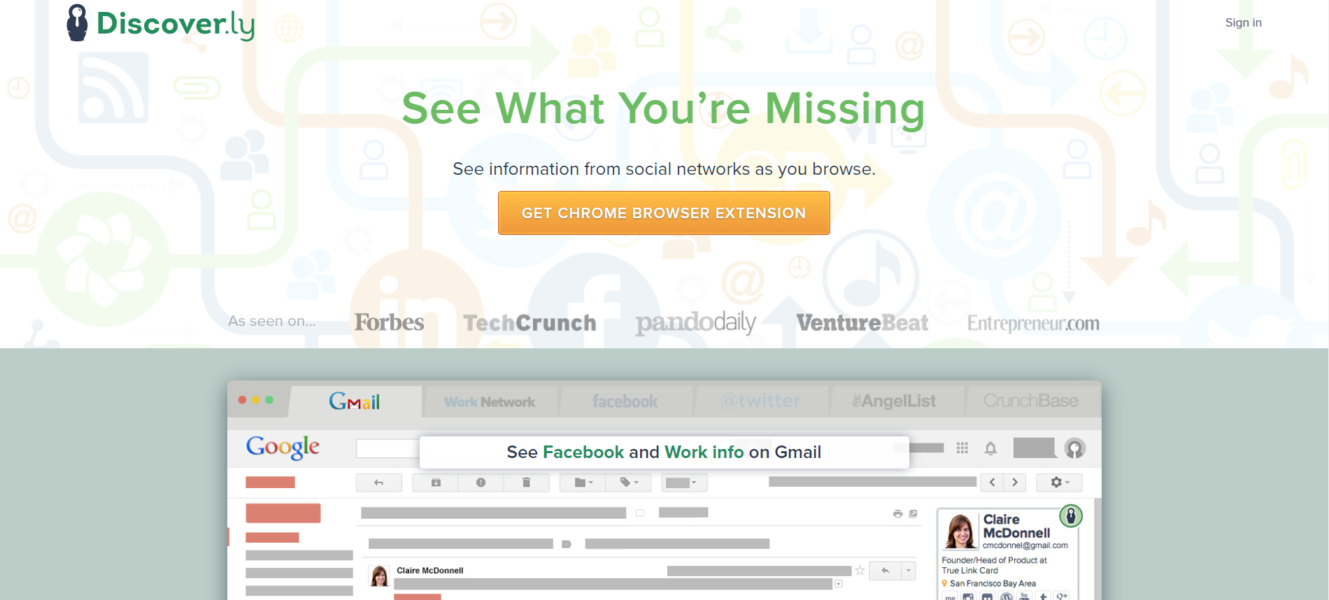 Discover.ly的主要功能是帮助用户在浏览社交媒体时了解他们的联系人。当用户访问LinkedIn、Twitter或Facebook时,Discover.ly会在页面上显示联系人的最新动态和信息。