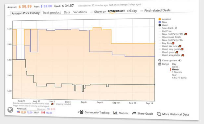 Keepa可以为用户提供商品价格的历史变化趋势图表,以便用户了解目标商品的价格走向。