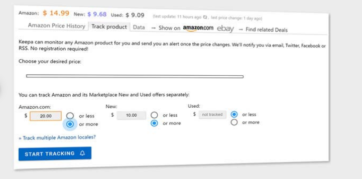 不,如果您想的话,不注册也可以使用Keepa。 然而,如果您决定注册一个帐户,您会获得很多好处。 这样做,您可以方便地管理您的商品追踪,提醒偏好等;当然,注册是完全免费的。
