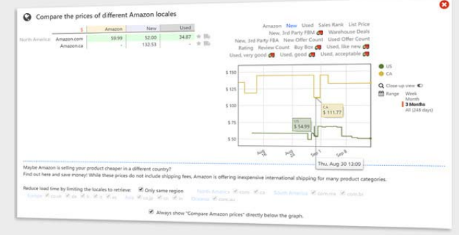 Keepa插件4.6免费查询、分析和跟踪亚马逊各大站点上的产品销售情况