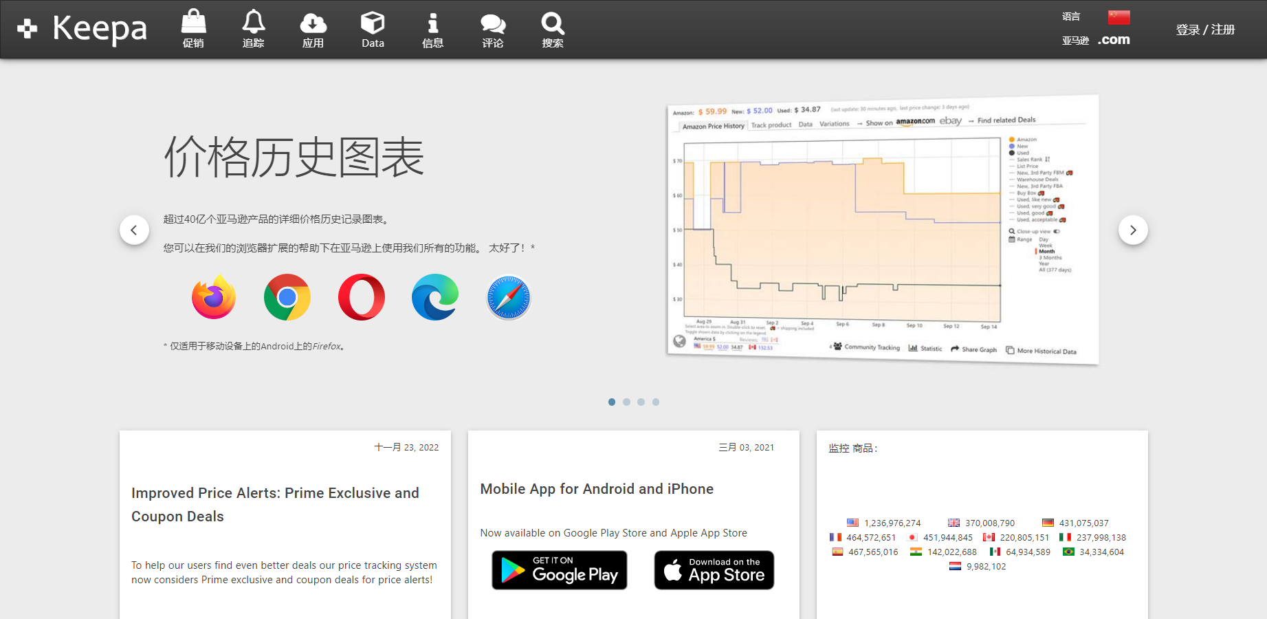 Keepa可以实时跟踪亚马逊上数百万个商品的价格变化,让您随时掌握商品价格的最新变化。