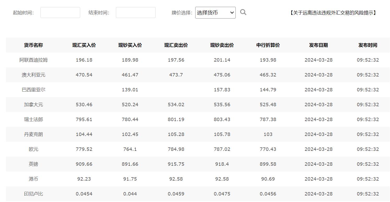 了解牌价来源:外汇牌价可能因不同的报价机构或银行而有所差异,因此需要选择可信赖、权威的报价来源。确保所使用的外汇牌价数据是准确、及时且可靠的,以避免因信息不准确而导致的交易风险。