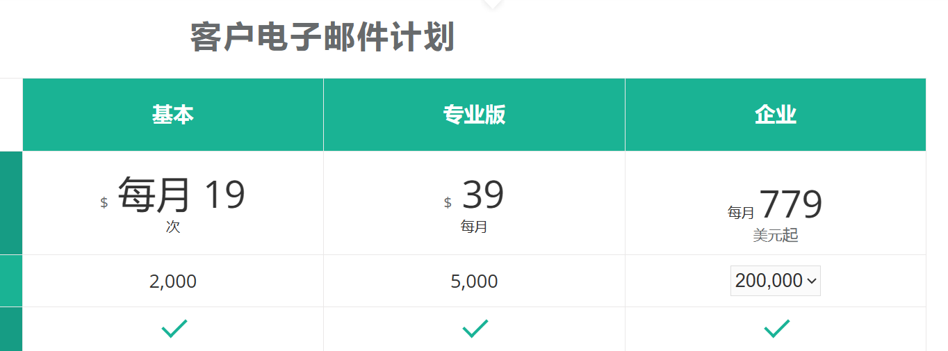 该工具可免费发送五百封邮件,超出五百封每月则需要收取超出数量的费用,19-799美元不等。