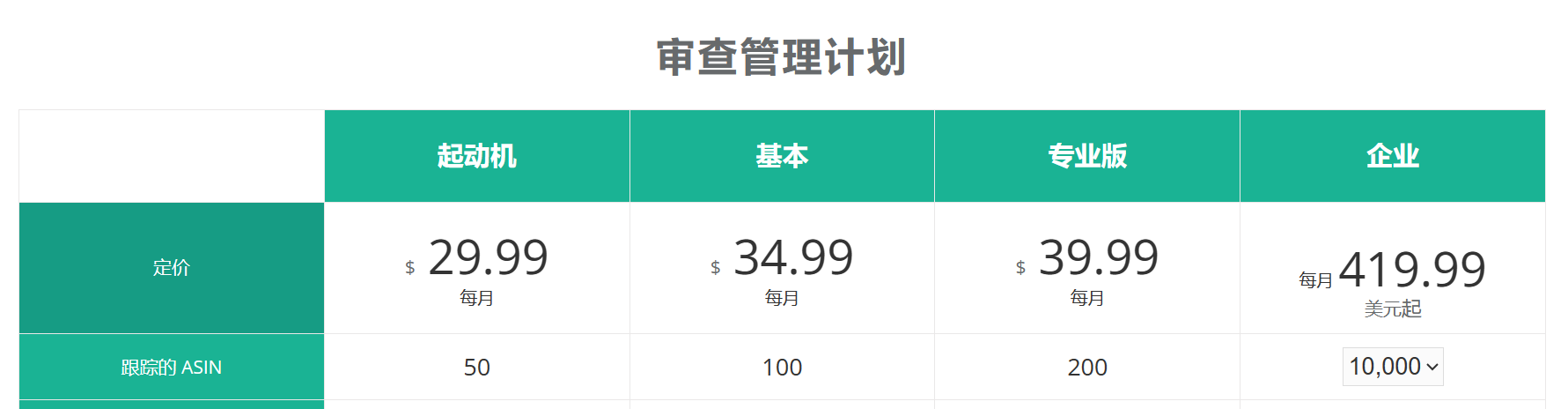 Enterprise:最低54.99美元/月,最低400条ASIN
