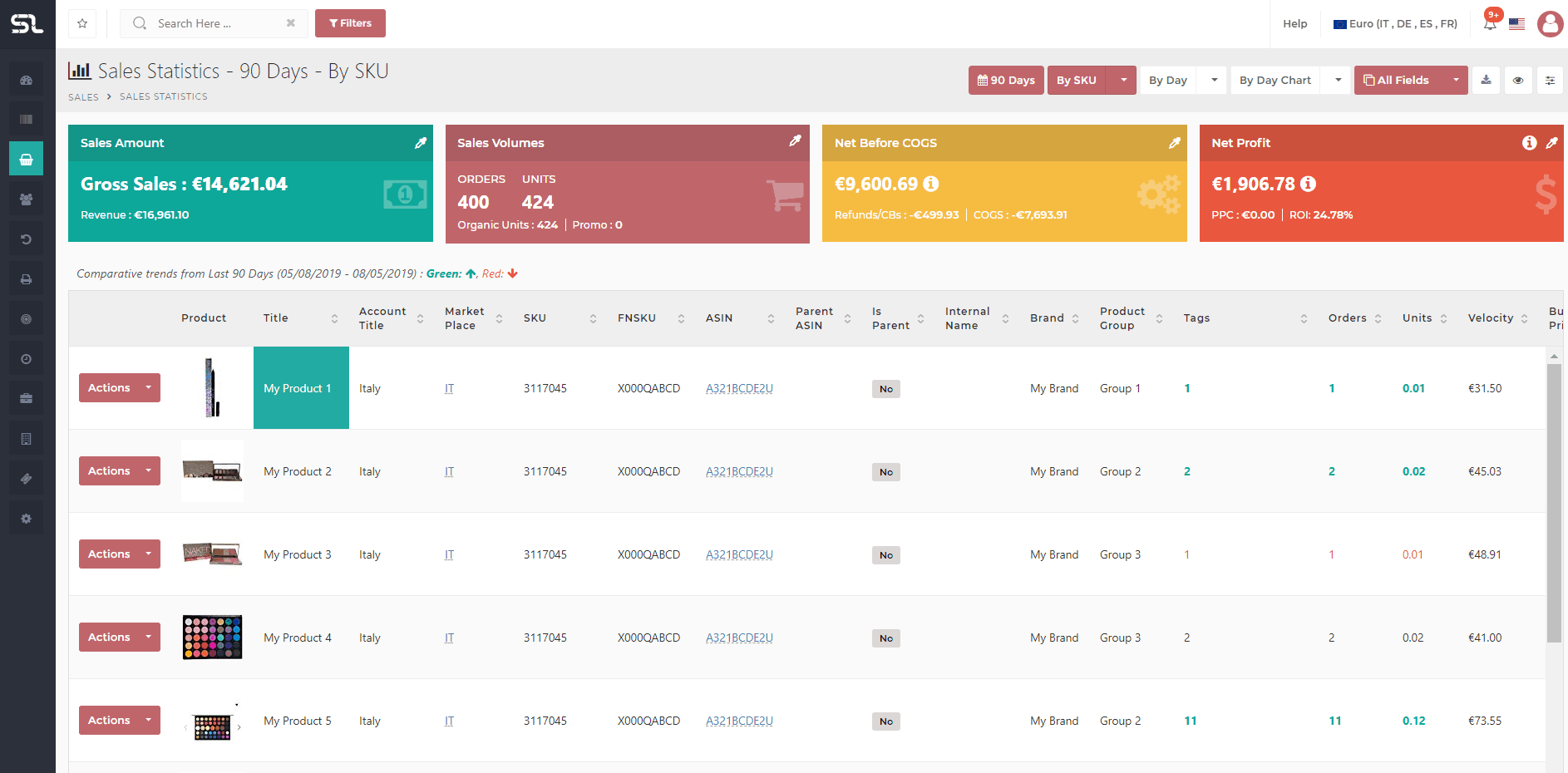 SellerLegend 的强大之处在于让卖家充分利用亚马逊卖家中央的数据,挖掘所需的任何数据,并创建对业务有用且有意义的可视化图表。这使用户能够更好地理解和分析销售趋势,库存状况以及其他关键业务指标。