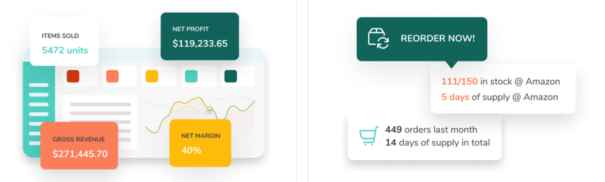 通过 ZonGuru 的 Business Dashboard、My Products 和 My Orders 工具,全面了解业务状况。轻松访问重要指标,管理产品,并及时获取从供应商重新订购的提醒,确保业务运营高效。