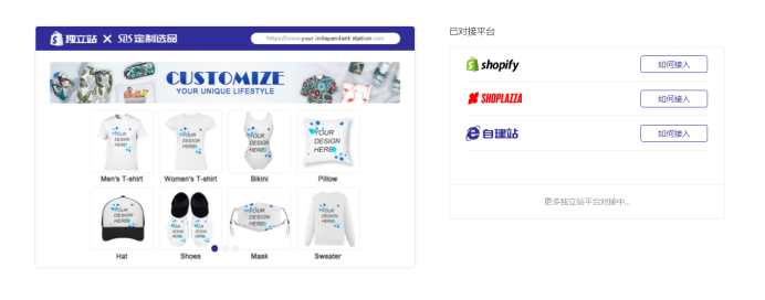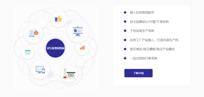 SDS提供一站式跨境电商DIY定制铺货服务,从供应链—设计定制—铺货上架—下单生产—质检发货全面提供尽善尽美的服务。