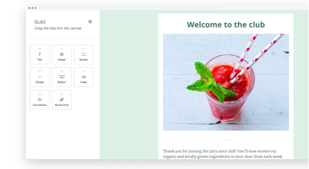 自定义任何模板或设计,使用简单强大的拖放式电子邮件构建器来展示您的品牌,无需编码。