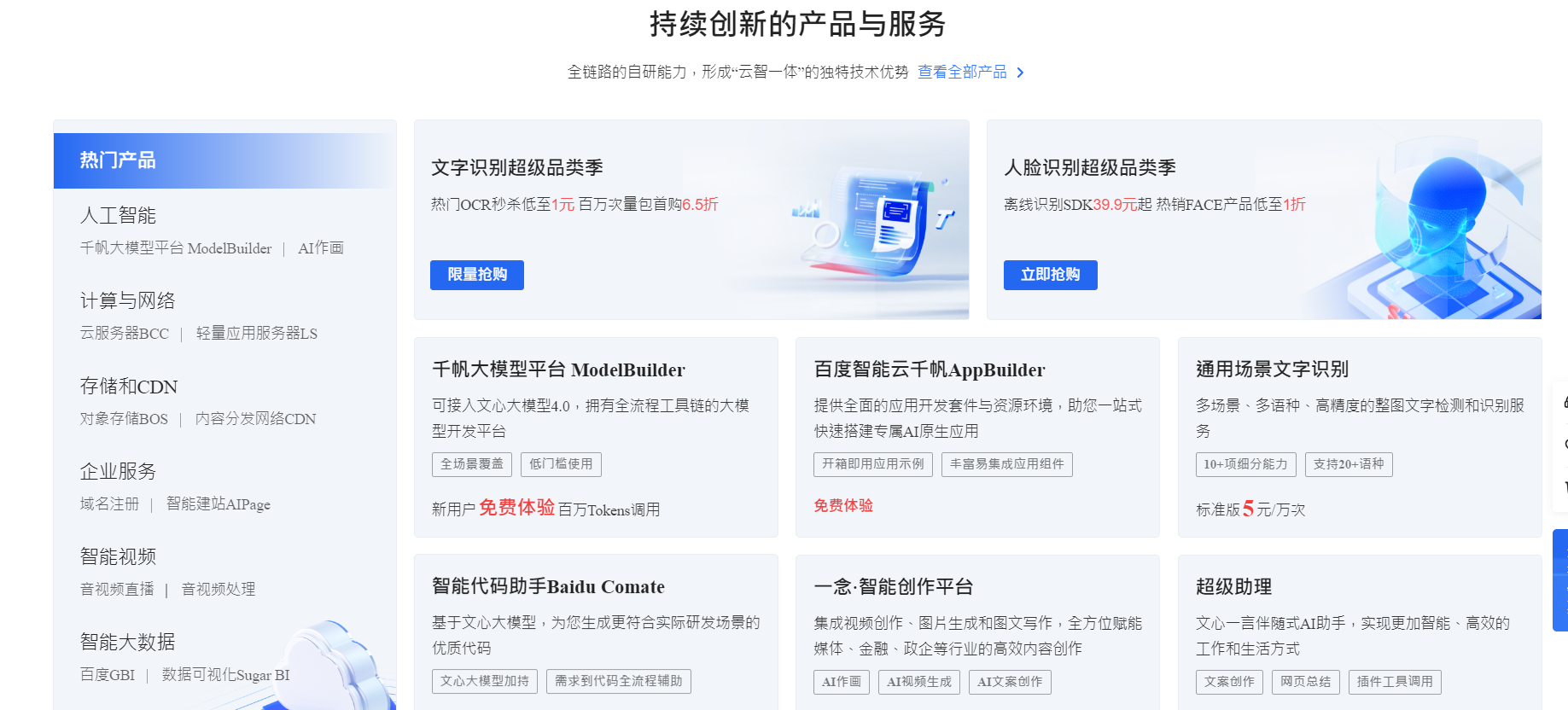 千帆大模型平台:为开发者提供了强大的人工智能算法和模型库,支持深度学习和大规模数据处理。