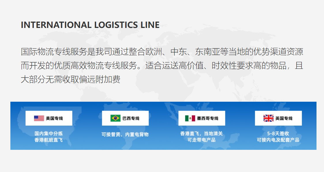提供国际快递、邮政小包、国际专线、国际空运和国际海运