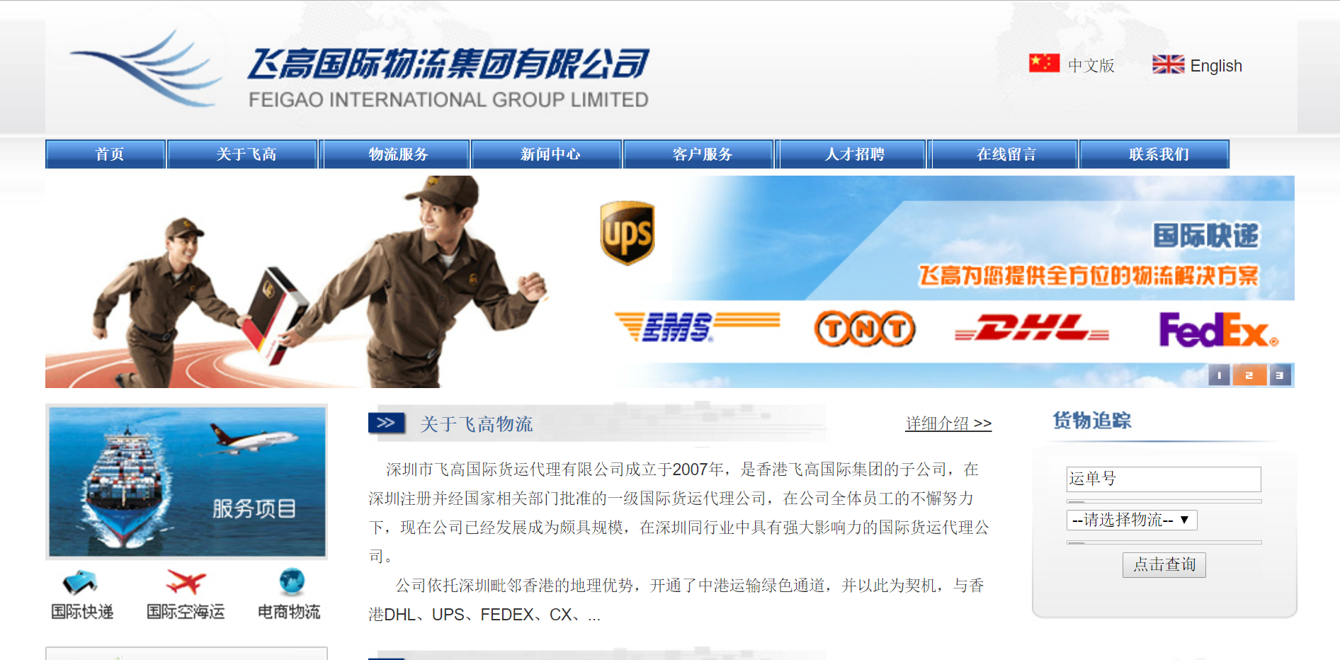 飞高国际货运代理有限公司是深圳注册的一级国际货运代理公司,作为香港飞高国际集团的子公司,自 2007 年成立以来一直致力于国际货运代理服务。利用深圳毗邻香港的地理优势,该公司开辟了中港运输绿色通道,与多家国际知名物流公司如香港 DHL、UPS、FEDEX、CX、EK 签订合作代理协议,同时与多家航空公司和船运公司建立了稳定的合作伙伴关系,构建了以航空运输为主的全方位物流服务体系。从快递门到门、空运门到门服务到海外仓储、进口航空运输、报关报检等业务,飞高国际致力于为客户提供最专业、个性化的物流和增值服务,旨在成为时效最快捷、通关最便利的跨境物流标杆企业。