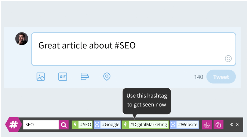 输入主题标签并按空格键即可获取即时主题标签建议(适用于任何网站)。 或者,选择页面上的任何文本(例如帖子的文本),右键单击它并选择“获取文本的主题标签建议”。