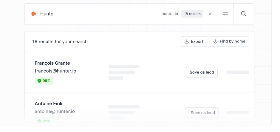 Hunter 可以通过客户的网站域名来查找与之相关的邮箱信息。您只需输入网站域名,Hunter 将自动搜索该网站上公开的邮箱地址,并提供结果。