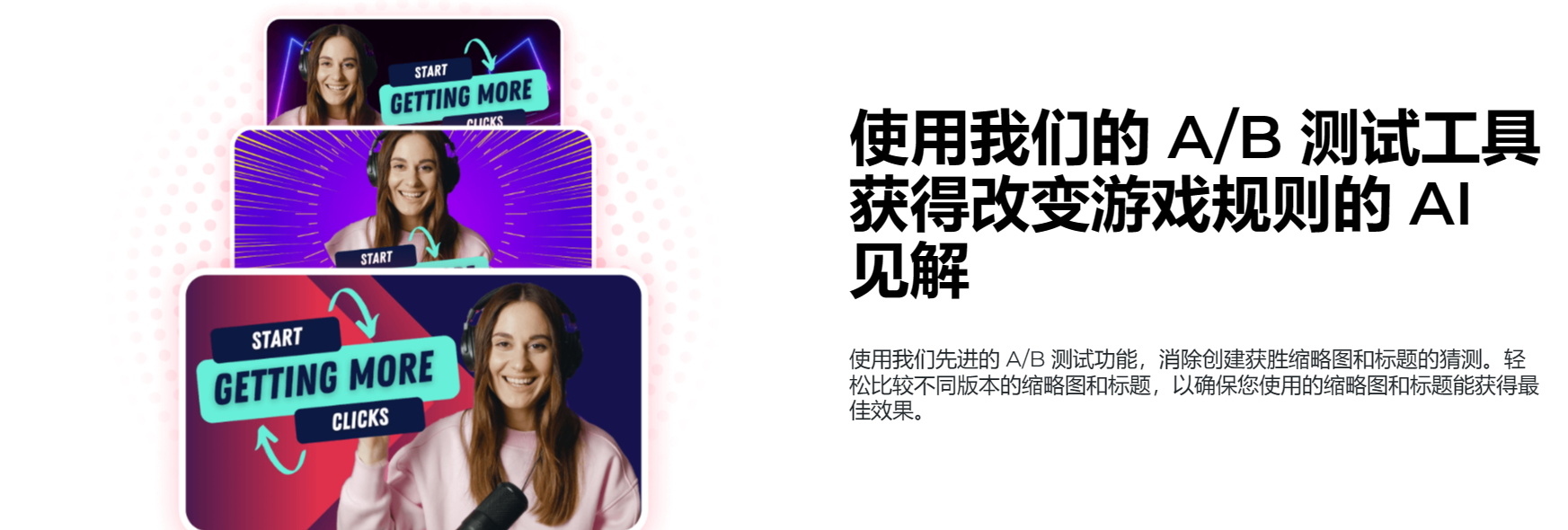 了解是什么吸引了用户点击。测试不同的缩略图,并利用我们的人工智能来预测哪些缩略图将获得最多的点击。将高级分析与 AI 相结合,观察点击率的提高。