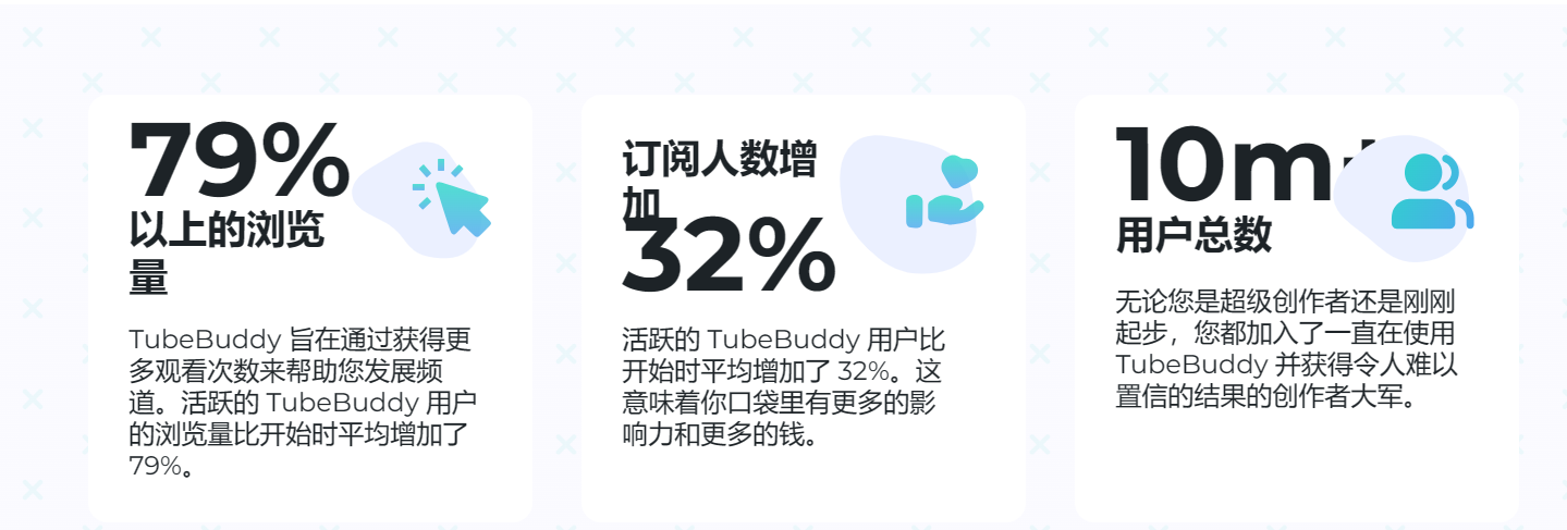 TubeBuddy是一个用于管理、优化和增长YouTube频道的工具。它提供了各种关键词研究、视频分析、SEO优化、社交媒体集成和其他功能,以帮助视频创作者和视频营销人员更好地管理和推广自己的YouTube频道。