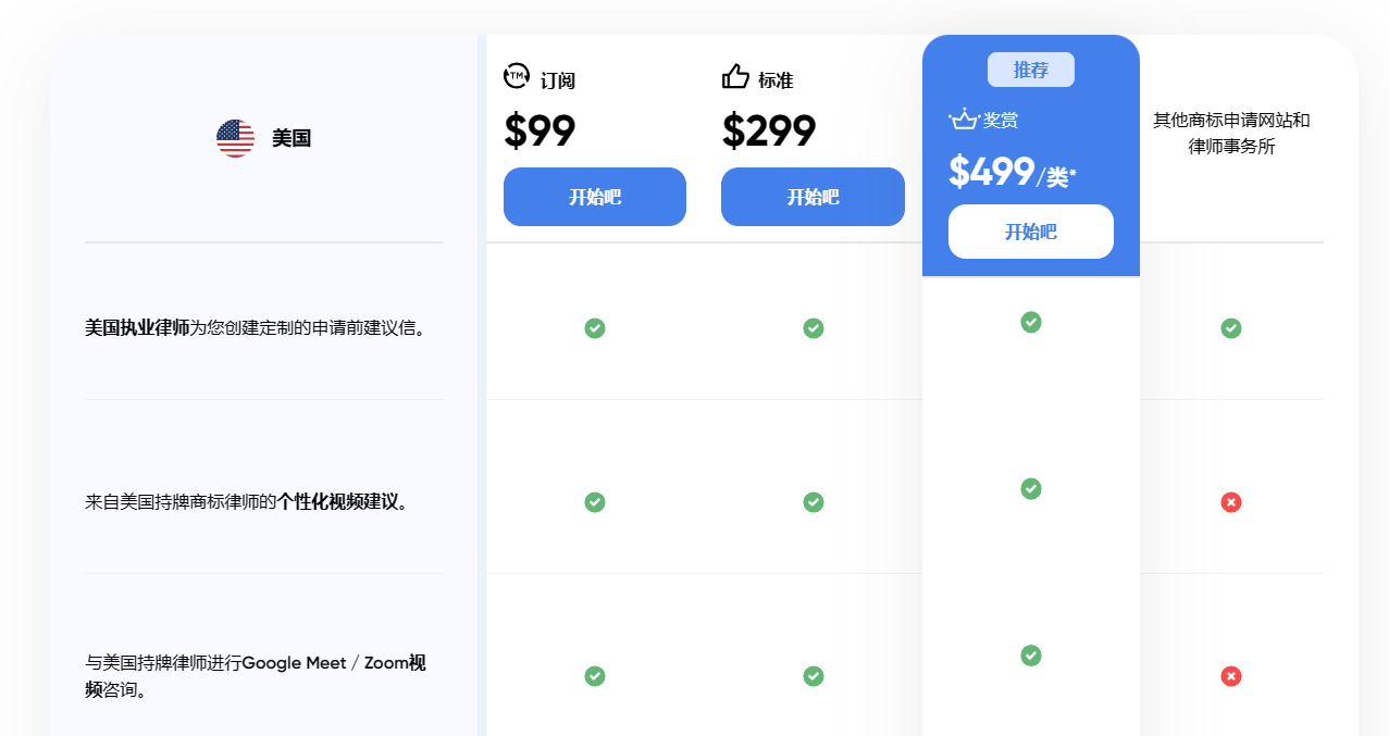 Trademarkia P.C.设置了多档定价方案。