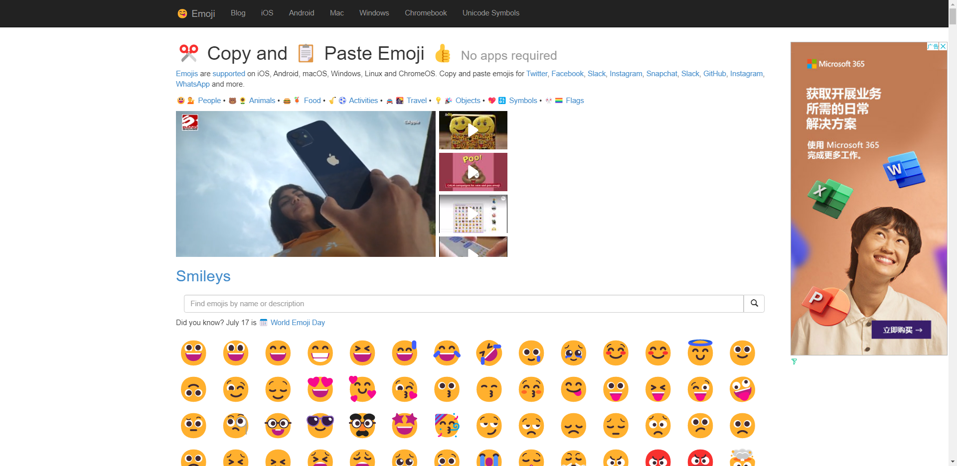 在线emoji表情复制,支持定向选择Facebook、twitter、instagram等平台的专属emoji
