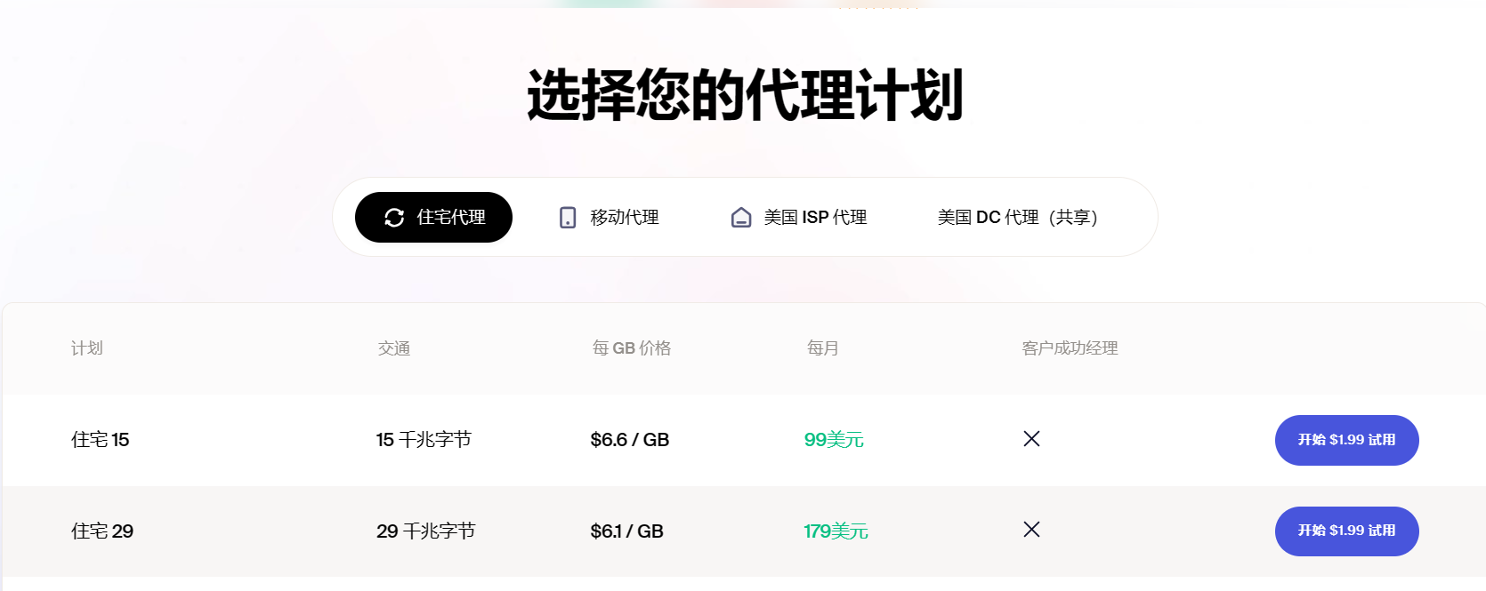 A:住宅代理是连接到 Wi-Fi 网络的设备的 IP 地址。最具成本效益的住宅代理类型。移动代理是连接到移动网络的设备的 IP 地址。最受 Web 资源信任。
