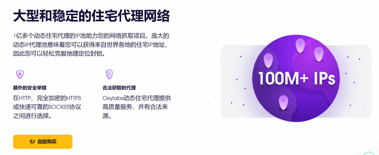 企业级海外HTTP/HTTPS/SOCKS5代理服务商,利用市场上最大最可靠的代理服务之一,覆盖全球195个国家:全球领先的1亿多住宅代理池,200多万数据中心代理高速高性能,用oxylabs的代理基础架构技术支持您的爬虫,1亿多来源合规的住宅代理池。
