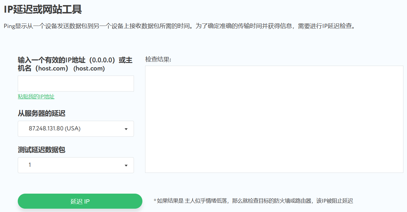 Proxy-Seller的IP地址延迟检查工具可以免费帮助在几秒钟内找出来自所需国家的用户对指定资源的访问质量水平,并点击一下。记录建立连接和响应的时间,并检查创建的通道的稳定性。这使你能够确定操作过程中连接的稳定性。