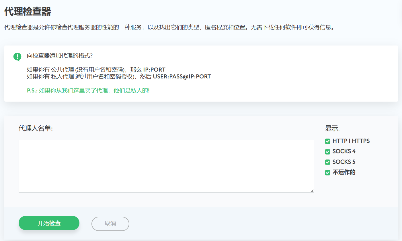 Proxy-Seller的代理检查器可以免费检查代理服务器。在几秒钟和几次点击中,你可以检查特定的代理服务器是否工作,以及获得所有关于他们的基本信息。