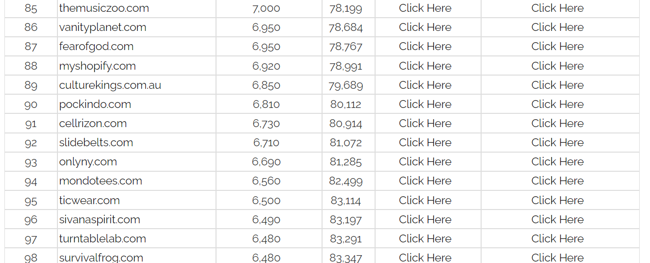 详细商店信息查看:在每个商店的条目下,都有“Click Here”的链接,用户可以通过点击这些链接查看更多关于该商店的详细信息,可能包括产品、营销策略、客户评价等。