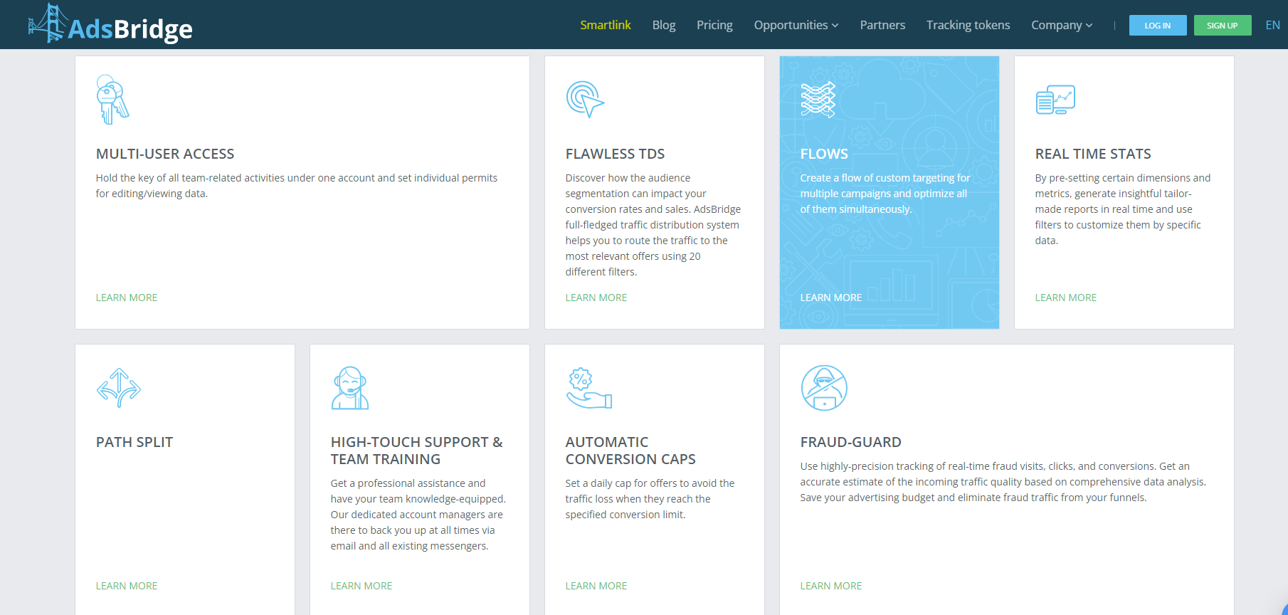 Adsbridge 提供智能分流功能,根据访客的特征和行为将其引导至最合适的页面,提高用户体验和转化率。