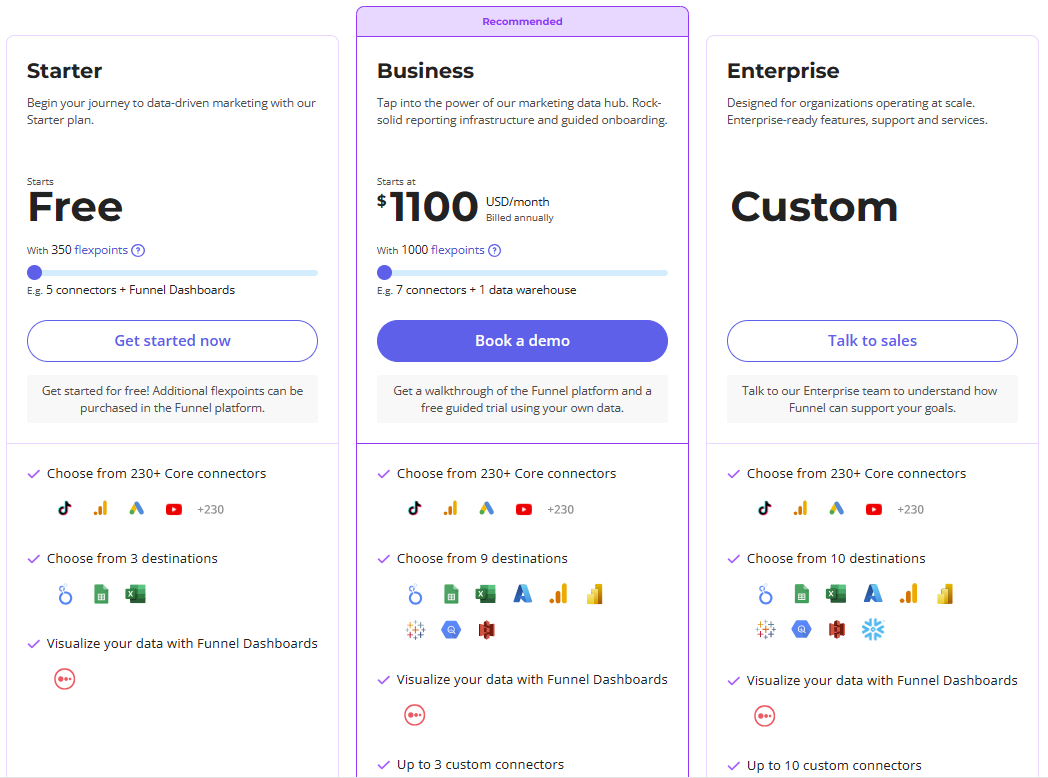 Enterprise: 定制价格,针对大型企业,提供全面的功能和服务,以及额外的flexpoints和连接器。
