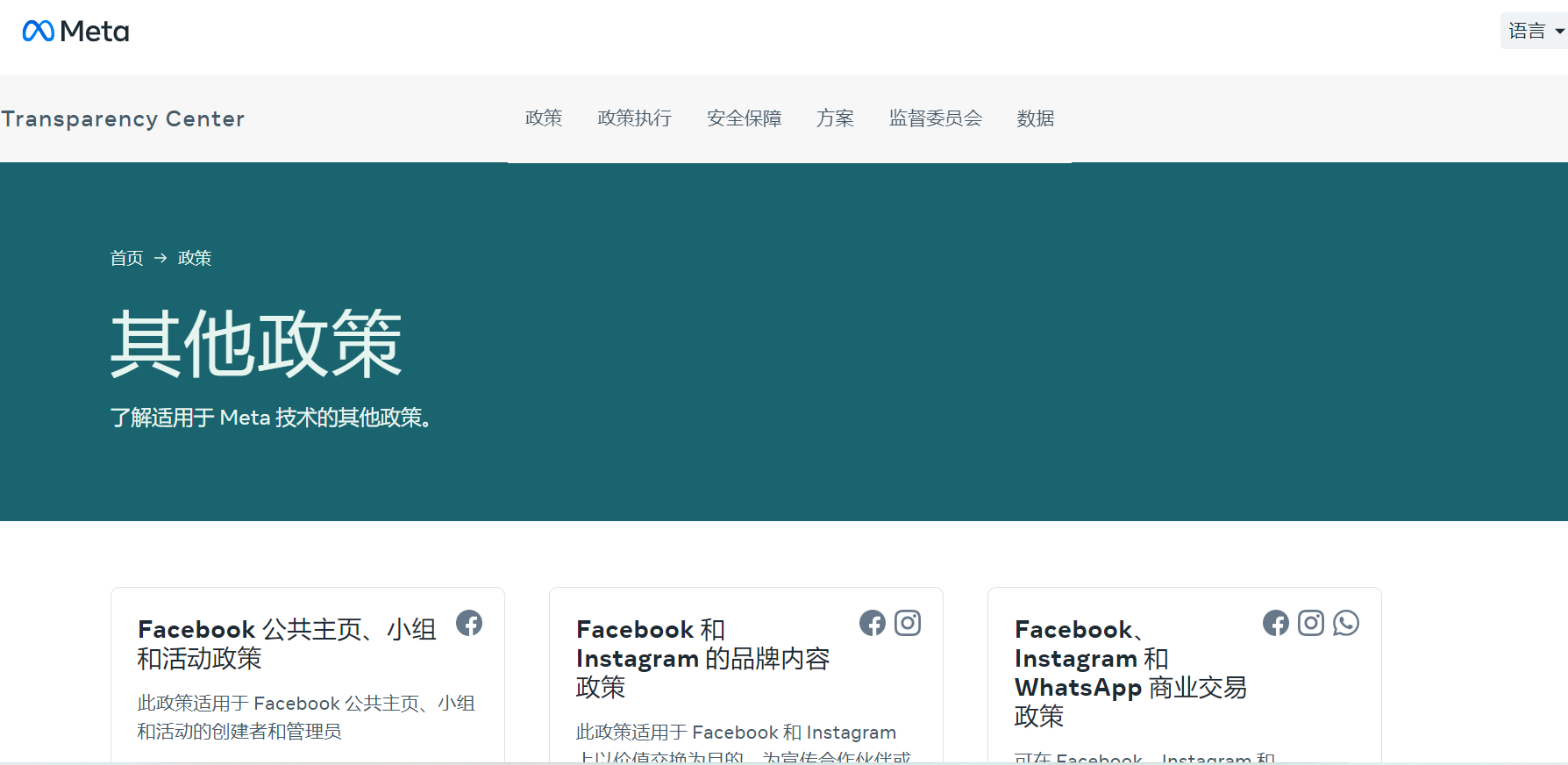 Facebook公共主页、小组和活动政策:该政策适用于Facebook上公共主页、小组和活动的创建者和管理员,规定了相关内容的使用准则和规范。