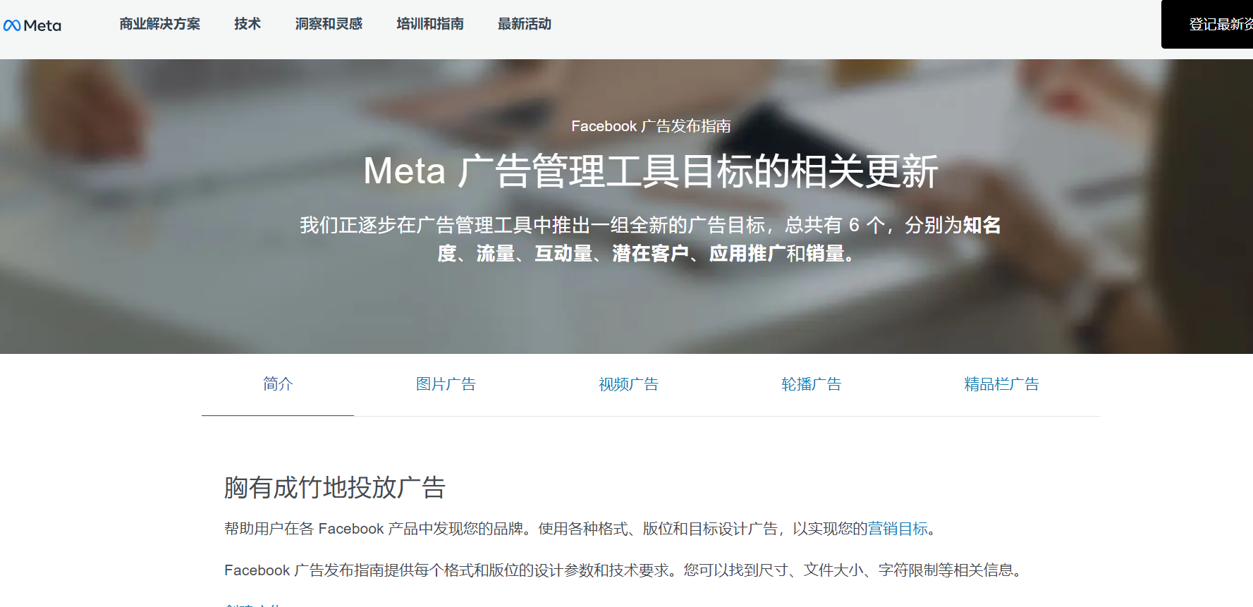 Facebook 广告发布指南提供每个格式和版位的设计参数和技术要求。您可以找到尺寸、文件大小、字符限制等相关信息。