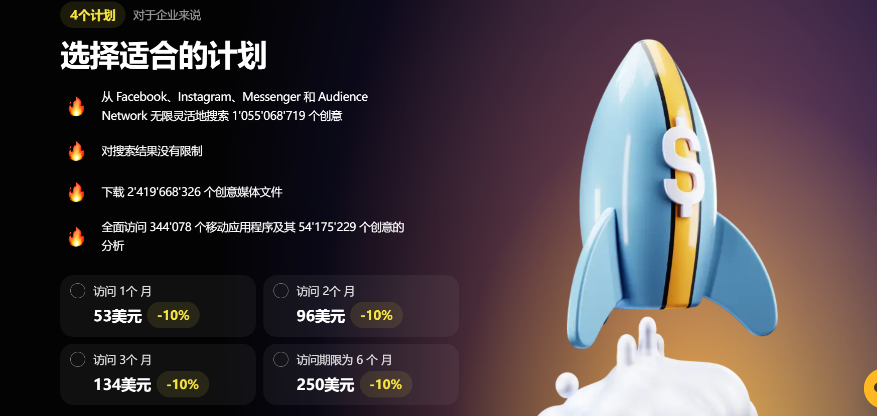 “成为一名成功的 Facebook 广告商,使用市场上全面的 Meta Ads 广告智能工具探索竞争对手的广告活动。”