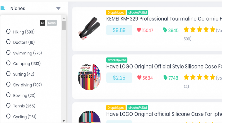 这对于不知道从何开始的初学者来说基本上是有好处的。从利基列表中,您可以选择一个您觉得有联系的产品,并将产品导入您的商店。