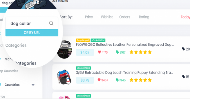 高级过滤选项允许您根据类别、国家/地区、利基市场、价格过滤器等查找产品。