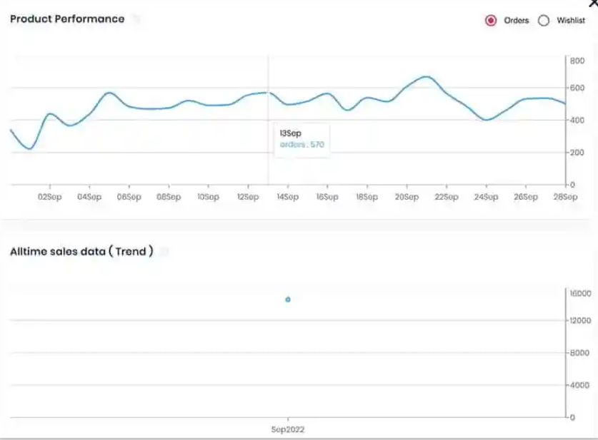 产品趋势功能允许您查看过去 2-6 个月的销售历史并“添加到愿望清单”。