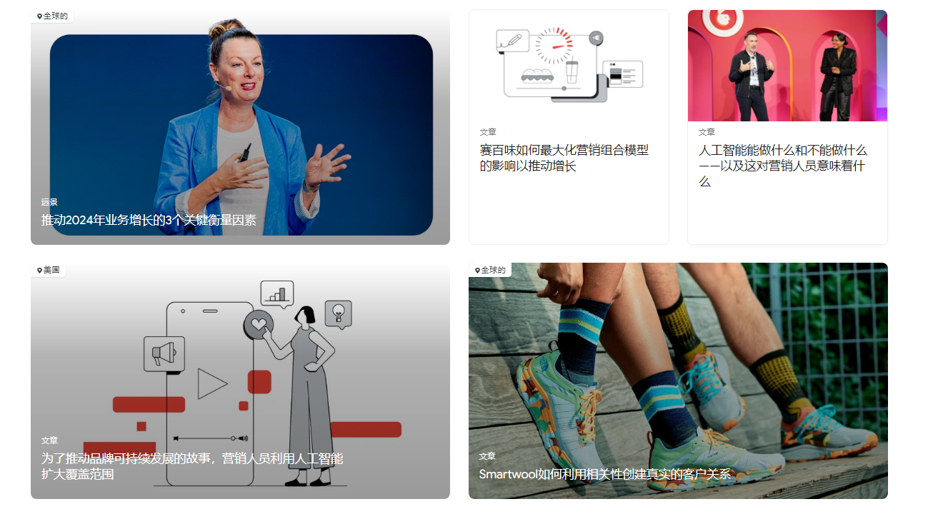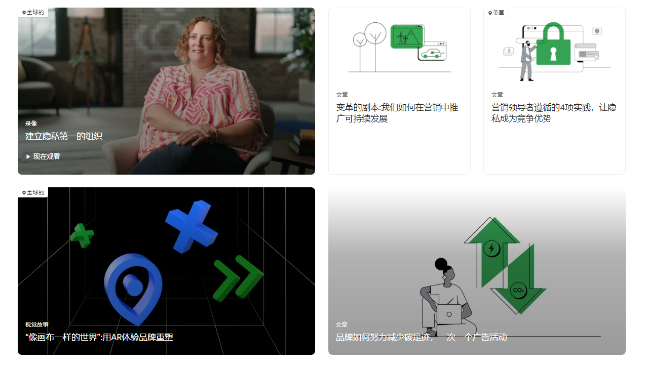 Think with Google提供丰富的营销资源,包括文章、案例研究、工具和指南等,旨在帮助营销人员了解最新的市场动态和最佳实践。这些资源涵盖了广告创意、品牌建设、数字营销策略等多个方面。