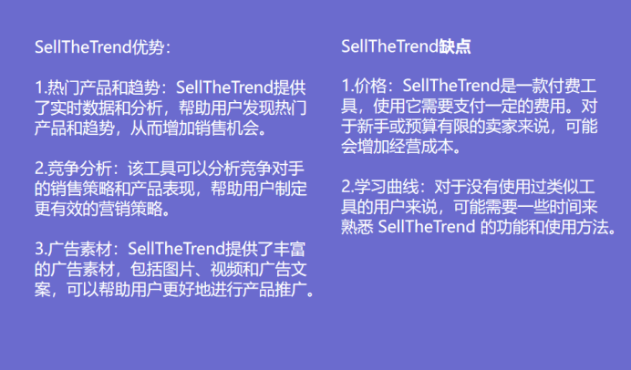SellTheTrend提供了一个独特的功能,可以帮助卖家分析当前热门产品的趋势。这个功能可以让卖家更好地了解市场需求和趋势,从而更好地选择和推广产品。这个功能还可以帮助卖家预测未来的市场趋势,让他们能够更好地规划和管理自己的业务。