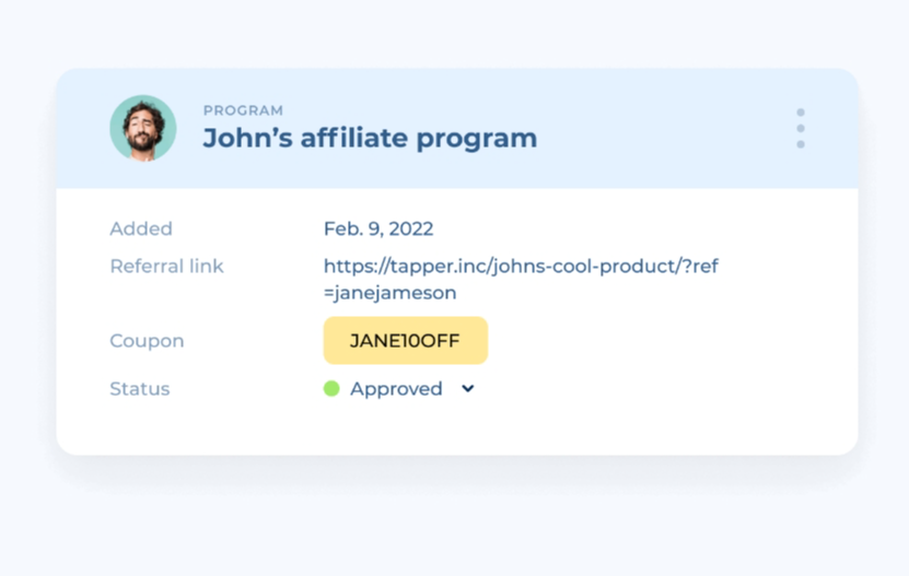 使用 Tapfiliate,您可以创建与您的品牌和域名完美匹配的白标会员页面。您甚至可以用品牌独特的声音发送个性化的电子邮件通知。